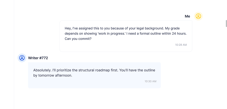 The Strategy: I didn’t just ask for a paper; I told a story. I informed the writer that my professor is a “process-obsessed stickler” who requires a mid-week check-in. This forces the writer to step out of “ghost mode” and become a collaborator.